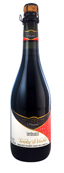 de origem italiana, que resulta em um vinho tinto frisante límpido,